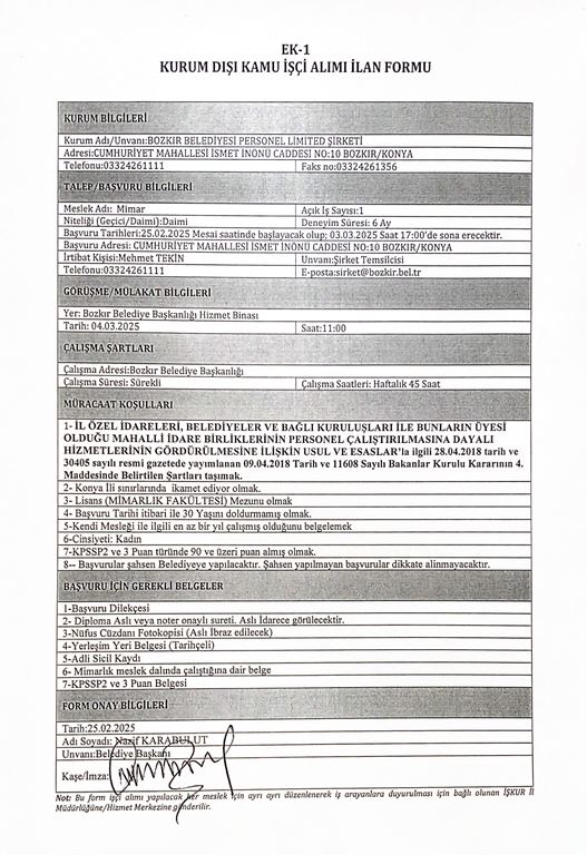 Kurum Dışı Kamu İşçi Alımı İlan Formu